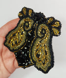 Black and Gold Beaded Brooch