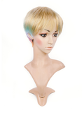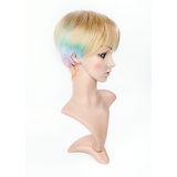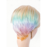 Based on our Kyle style, this pastel rainbow is perfect for everyday wear or your next Pride event! This undercut style has super-short 1.5" (3.8 cm) fibers around the bottom with longer 4-5" (10-12.7 cm) fibers around the top. With a TON of wefts throughout and a pre-teased top, the Belmont is a versatile wig that can be styled numerous ways with a hairdryer.