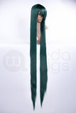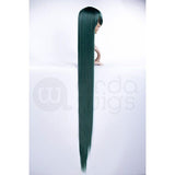 Delilah is approximately 60" (152 cm) and has layered ends for a natural look. On a person over 6 feet tall this wig will still go below their knees! There is no short hair in the front, only bangs, making this our longest full wig.