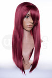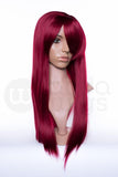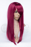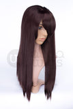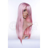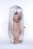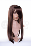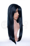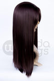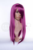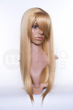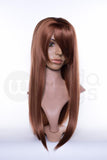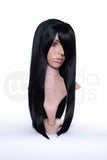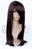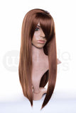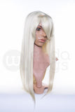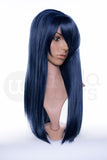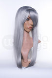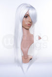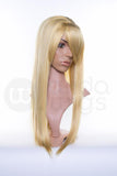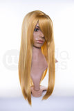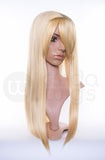 The Eowyn's length measures 24" (61 cm) from the crown to the tip while the layered bangs are 6" (15 cm) at the shortest and 8" (20 cm) at the longest. The skin top measures approx 5" x 5" (13 x 13 cm) and is flush with the edge of the wig for easy parting. Eowyn is a great wig that can be parted in any direction; side, middle, or even a zig-zag. The bangs are heat-trained forward but can be parted however you like with some heat.