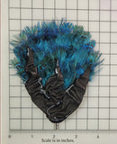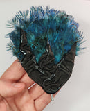 This one-of-a-kind Blue Feathered Hat pin is a striking accent to a hat. Black genuine leather with black gloss detailing caps of the bottom edge.