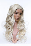 Grace is a mid-length 28-29" (71-73 cm), gentle wave wig. This wig has a half-circle skin top in the front that measures approx 4.5" (11.5 cm) wide and 3" (7.5 cm) deep. The center part can be altered to either side with heat from a hair dryer, similarly to our Buttercup and Westley styles.