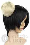 These buns are approximately 3'' (7.5 cm) in diameter. Two comb attachments on the inside can be pulled down to help secure them to the wig, or they can be sewn in. It comes stuffed with paper to keep its shape; we suggest keeping this paper inside the bun when in use. Also, be sure to spray liberally with hairspray before you go out in the wind!