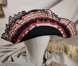 Set sail in style with this finely crafted handmade pirate hat, designed for the bold adventurer at heart. Expertly crafted with red and white stripe trim and red lace details on a black base, this hat is perfect for those who want to add a touch of swashbuckling flair to their wardrobe, or turn heads at the renaissance fair.