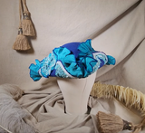 Set sail in style with this finely crafted handmade pirate hat, designed for the bold adventurer at heart. Expertly crafted with teal and white diva lace details on a blue base, this hat is perfect for those who want to add a touch of swashbuckling flair to their wardrobe, or turn heads at the renaissance fair.