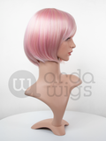 Heidi is a chin-length bob with minimal layering in the back and feathered bangs. This style has a 2” skin top at the crown, and bangs can be gently swept to either side. The back measures roughly 18” (45.7 cm) from the crown. The bottom few weft rows are sewn in reverse to give the style a round shape.