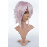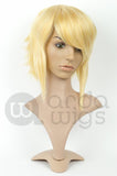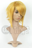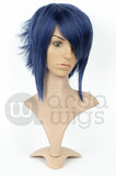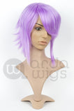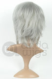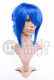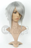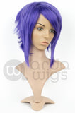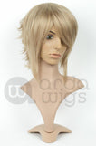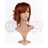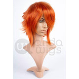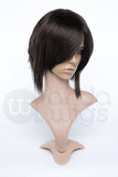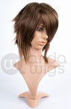 This wig has short, choppy layers in the back with long side sections at the ears. The bangs are long and reach just around the nose on a person. Jaguar's overall length measures 5'' to 6'' (13 cm to 15 cm). This wig has a crimped top - thick and great for spiking, teasing, fluffing, or leaving as-is.