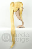 Jeannie comes with a large skin cap that runs the top 5" (13 cm) portion and is flush with the front edge. The bangs can be parted anywhere. Jeannie comes with a ponytail clip to place over the existing ponytail. Secure with bobby pins or a wig grip for extra support, as this wig is thick and very heavy. Shorter hair around the interior of the ponytail area help give the wig coverage and thickness while taking off more weight.
