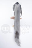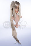 Jeannie comes with a large skin cap that runs the top 5" (13 cm) portion and is flush with the front edge. The bangs can be parted anywhere. Jeannie comes with a ponytail clip to place over the existing ponytail. Secure with bobby pins or a wig grip for extra support, as this wig is thick and very heavy. Shorter hair around the interior of the ponytail area help give the wig coverage and thickness while taking off more weight.