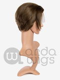 A must for any drag king. Our Landon style is named after the King of kings and features a more square, male-type airline and longer sides to create the appearance of sideburns. The hand-tied lace front is thick and measures approx. 1.5 to 2'' deep; wefting begins immediately afterward, making parting this wig easier. (Please note that we don't recommend parting all the way to where the wefting begins as it will show, especially on light wigs. This is not a defect.) This wig is cut long in the front and shorter in the back, making it easy to achieve all sorts of character looks (as well as fashionable K-pop styles)!
