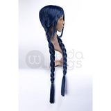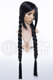 This longer version of the Chibi is a pigtailed wig with a skin part that goes all the way down the back of the head. The tails measure 34" (86 cm) from crown to tip. The Leia has long bangs that reach below the chin.