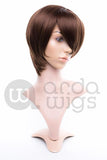 The Lulu is a short bob with a small, slightly off-center skin part measuring approximately 2" (5 cm) in length. The bangs are feathered and approximately 5" (13 cm) long while the back is 2" (5 cm) long overall. Lulu is a great base for our clip-on ponytails, or characters with an alternative bob! The bangs can be parted any direction in front.