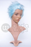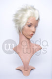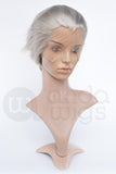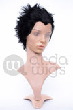 This lacefront is the same length all around, layered at approximately 3" to 5" (7.5-13 cm) and is trained to spike upward. Marty's bangs are only slightly longer at approximately 5" (13 cm). Lacefronts are the best way to have a natural-looking hairline and are meant to be attached to your head with adhesive or lacefront tape.