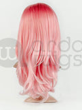 Natalee is 100% dip-dyed Arda Classic fibers. The top of this wig's colour is a dipped pink darker than Princess Pink (CL-010), with a pink base similar to Serah Pink (CL-013). There’s also some blonde blended in for extra fun. This style also has a ventilated part down the center. The shortest layers are in front, measuring about 12", and the overall length from the crown to the longest layer is 22” (25" when pulled straight).