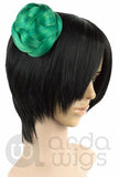 These buns are approximately 3'' (7.5 cm) in diameter and the fibers are placed on a stiff wig lace and the braids are attached using adhesive. Two comb attachments on the inside can be pulled down to help secure them to the wig, or they can be sewn in.