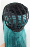 Re: A drop of golden, melodic sun. Our Re comes in Classic or Silky, with Raven (CL-039)/Marianas (SI-039) on top and Mako Green (CL-045)/Persian Green (SI-045) underneath. Like our Claire, the Re has long, backwards-wefted layers makng this wig perfect for styling in a high, thick pony. Neck fringe and crimped base hairs allow for a more natural look at the nape. Please be advised this wig does NOT come in a pre-styled ponytail, allowing you to choose to wear her up or down.