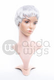 Short short short, all around. All lengths of fibre are less than an inch (2.5 cm) save for slightly longer hair at the crown. Minimal bangs, just enough to cover the edge of the wig at the forehead and a 1" (2.5 cm) skin top at the crown.