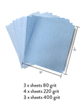 - 220 fine grit for sanding initial coats of paint, smoothing and cleaning up foam edges without tearing