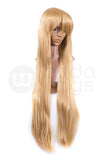 Comparable to our Le Tigre style, but with bangs! This wig measures 40" (100 cm) from the 1" (2.5 cm) skin top to the ends and has short feathered layering at the bottom starting about 6" (15 cm) from the tips. There are lots of bangs for lots of volume!